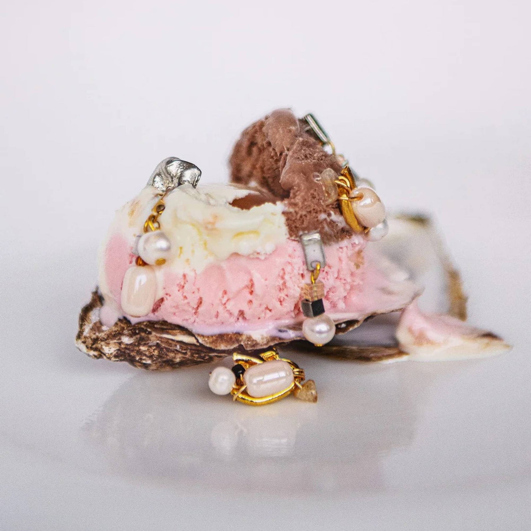 - Matériaux : Étain, plaqué or 22 Carats, acier inoxydable, perles d'eau douce, verre, pierres semi-précieuses.