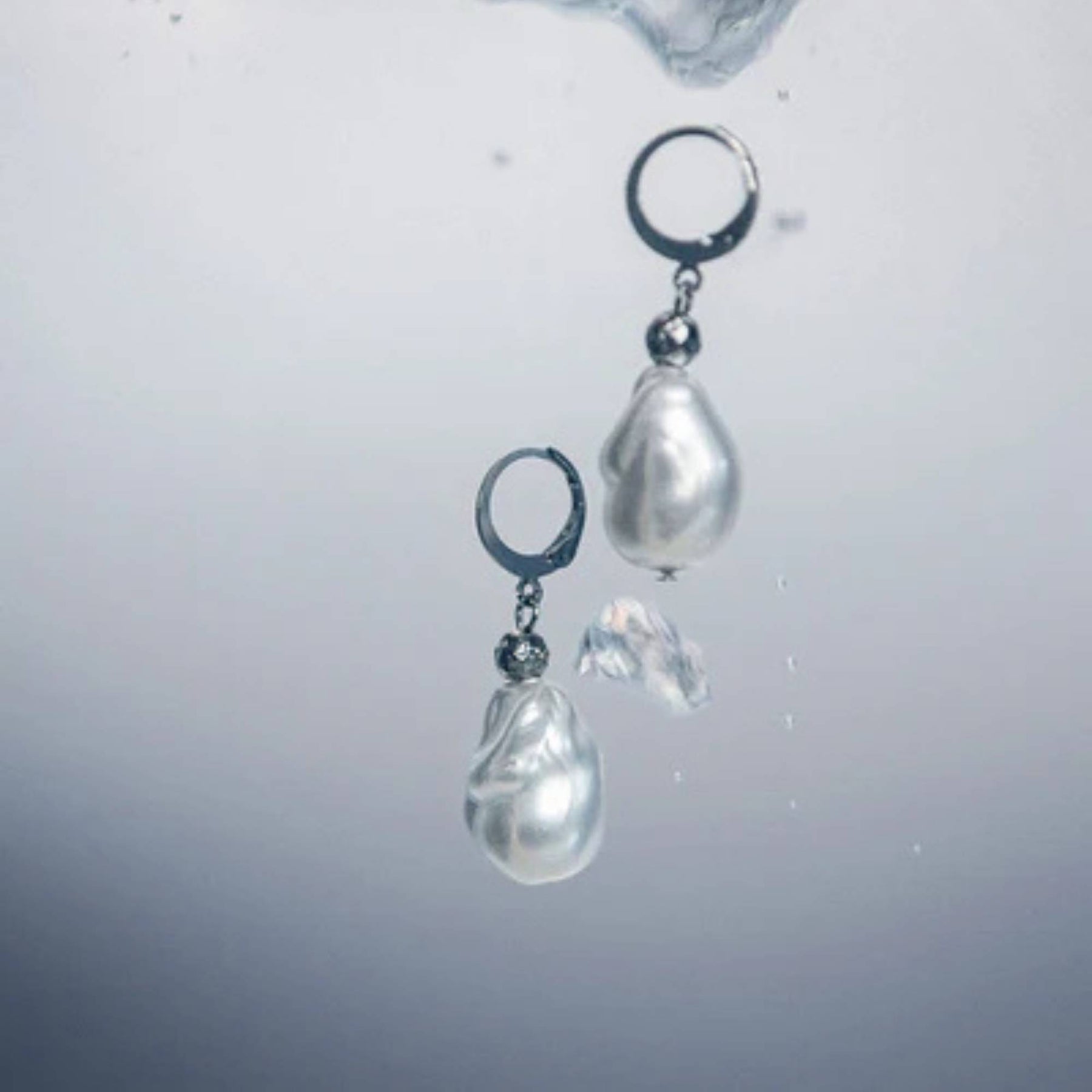 Les boucles d’oreilles Myrte argent séduisent par leur silhouette épurée et organique. Une pièce de verre blanc aux formes libres, rappelant une perle baroque, est délicatement suspendue sous une petite bille en acier inoxydable. Sa surface satinée et ses courbes irrégulières captent la lumière avec douceur, créant un bijou à la fois simple, contemporain et plein de caractère.