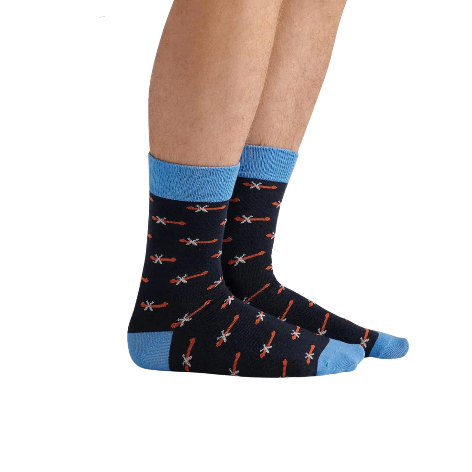 Homme portant des Chaussettes avec motifs de canoes par La petite maison bleue vu de côté