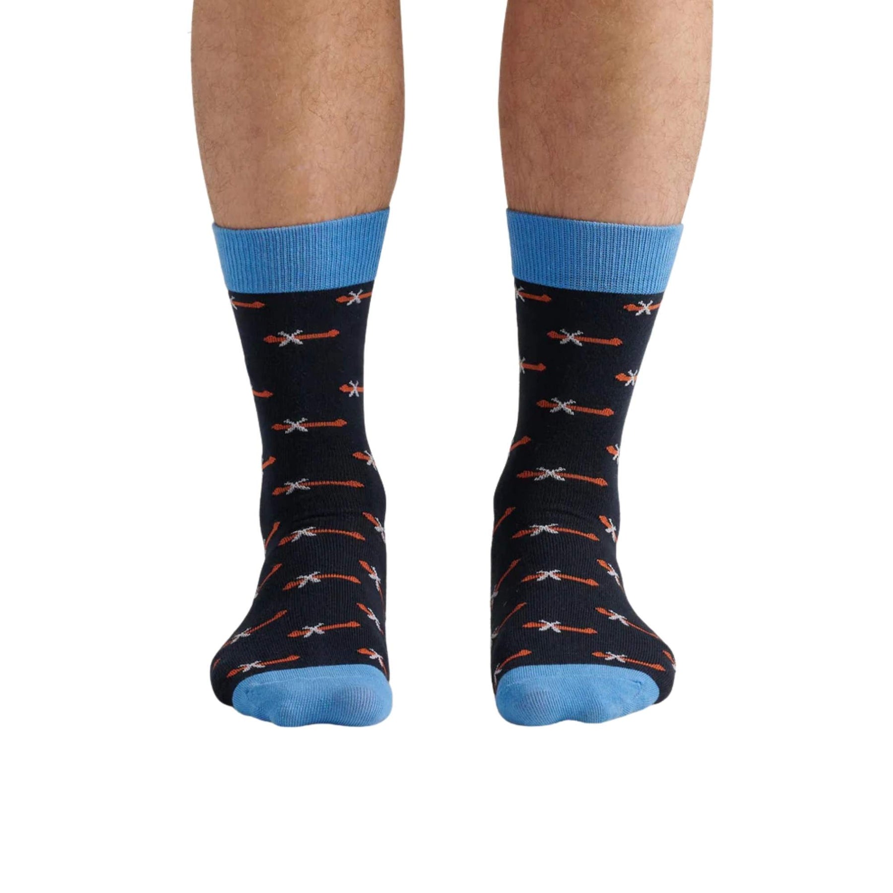 Homme portant des Chaussettes avec motifs de canoes par La petite maison bleue vu de devant